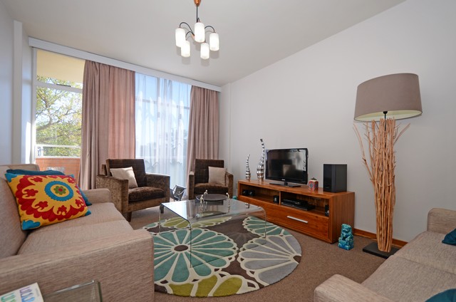 • Open plan living and dining area large enough to fit a dining room table and a lounge suite