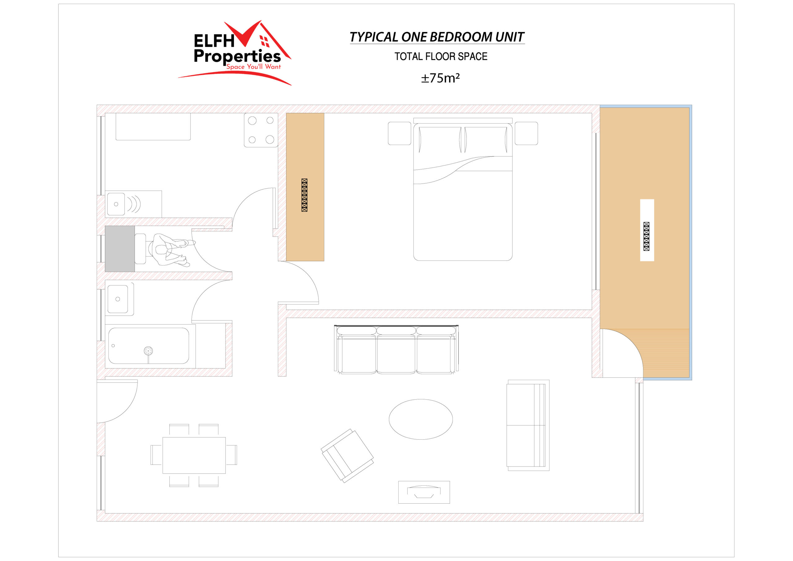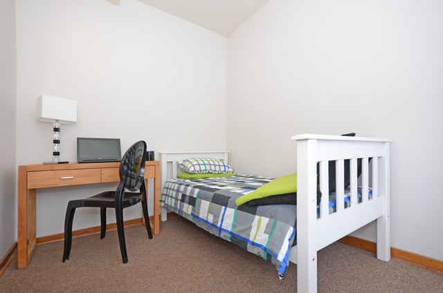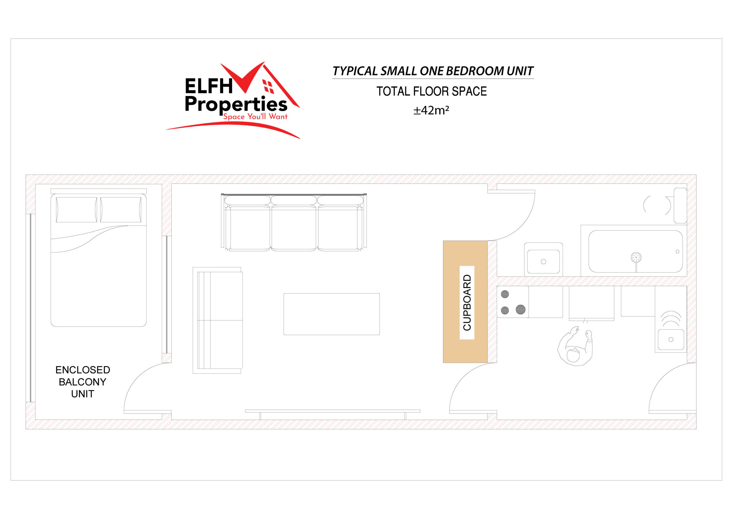 • Balcony enclosed to form a bedroom large enough to fit a double bed.