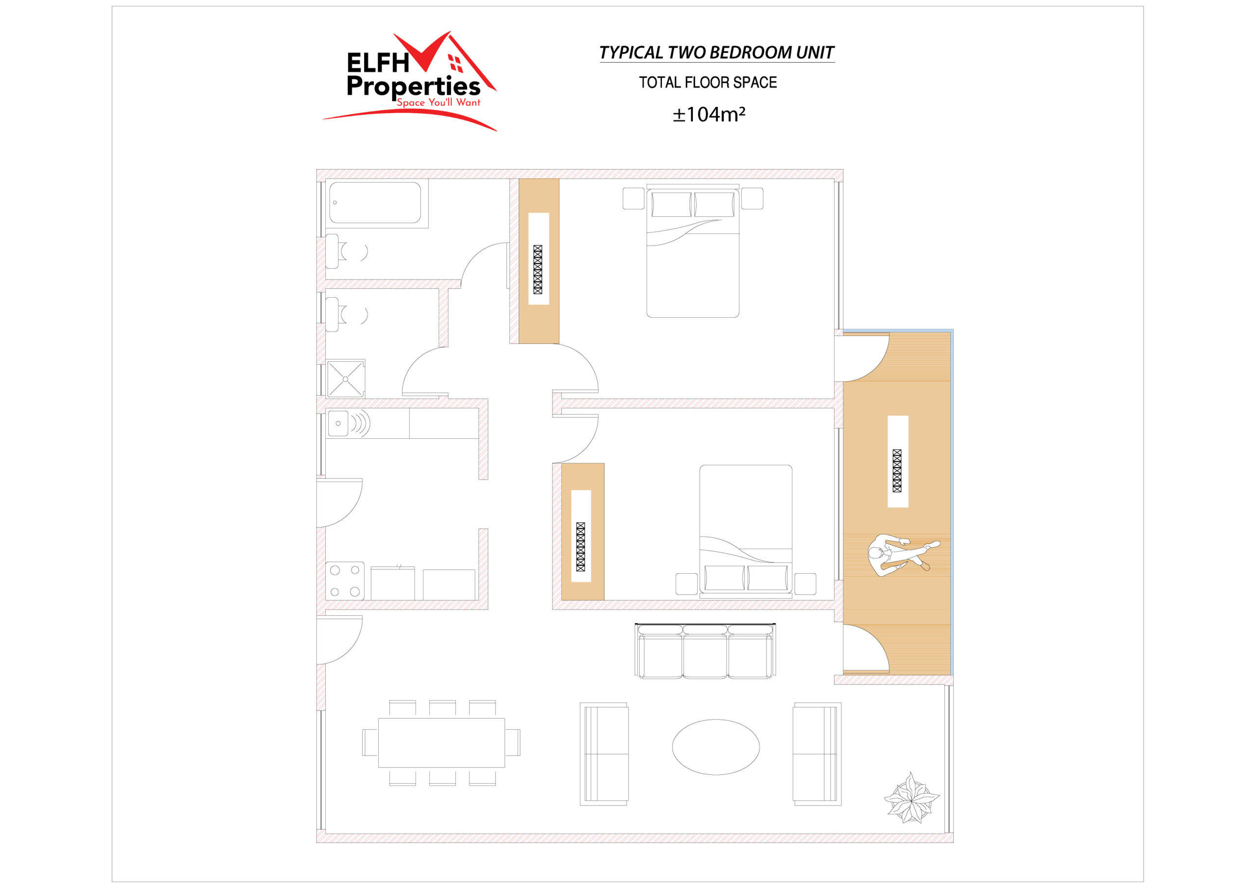 • Open plan living and dining area large enough to fit an 8 seater dining room table and full lounge suite